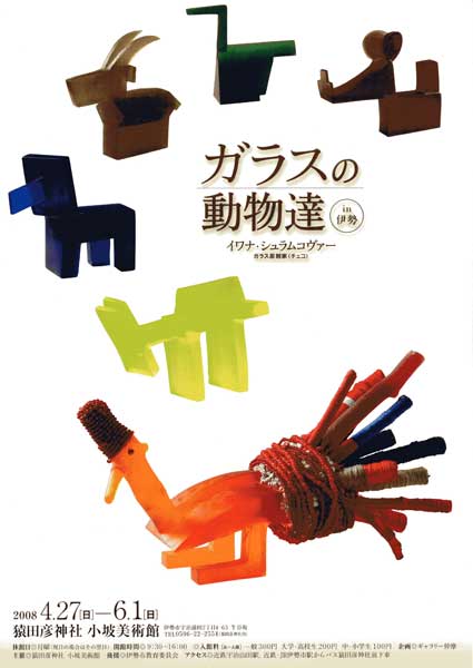 今日は、猿田彦神社 小波美術館にガラスの動物達 in伊勢があり鑑賞にいったのです。猿田彦神社 小坡美術館 2008年春の展覧会 ガラスの動物達 イワナ・シュラムコヴァー 4月27日 (日) ~6月1日 (日) 抽象的ですが、綺麗です。不思議な透明感ここに展示にあった→ガラスの動物達います