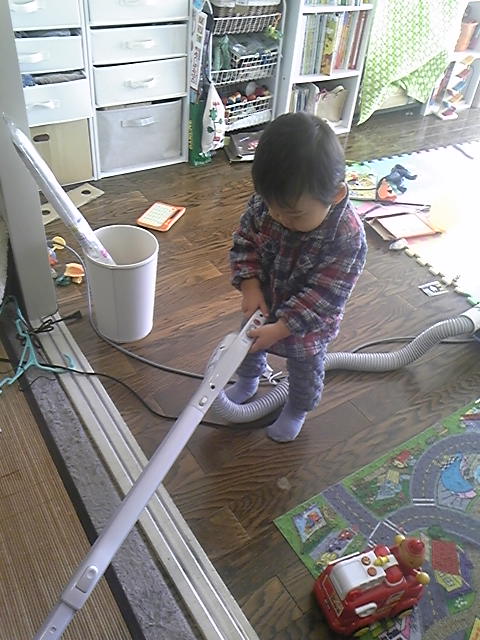 今日はママの掃除を手伝ってました。(邪魔してる?)