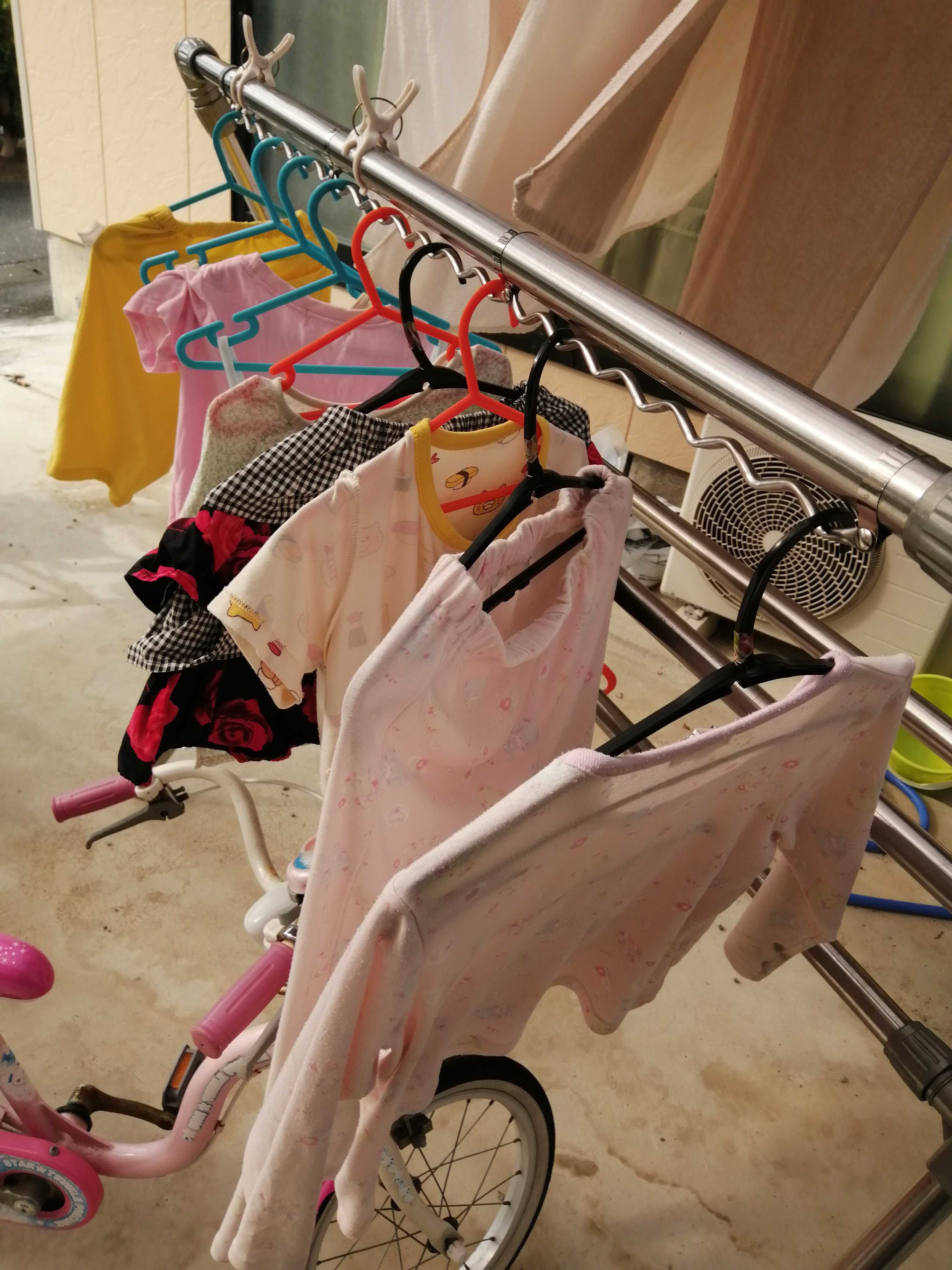 買ったハンガーに洗濯物をかけて、干して完了です