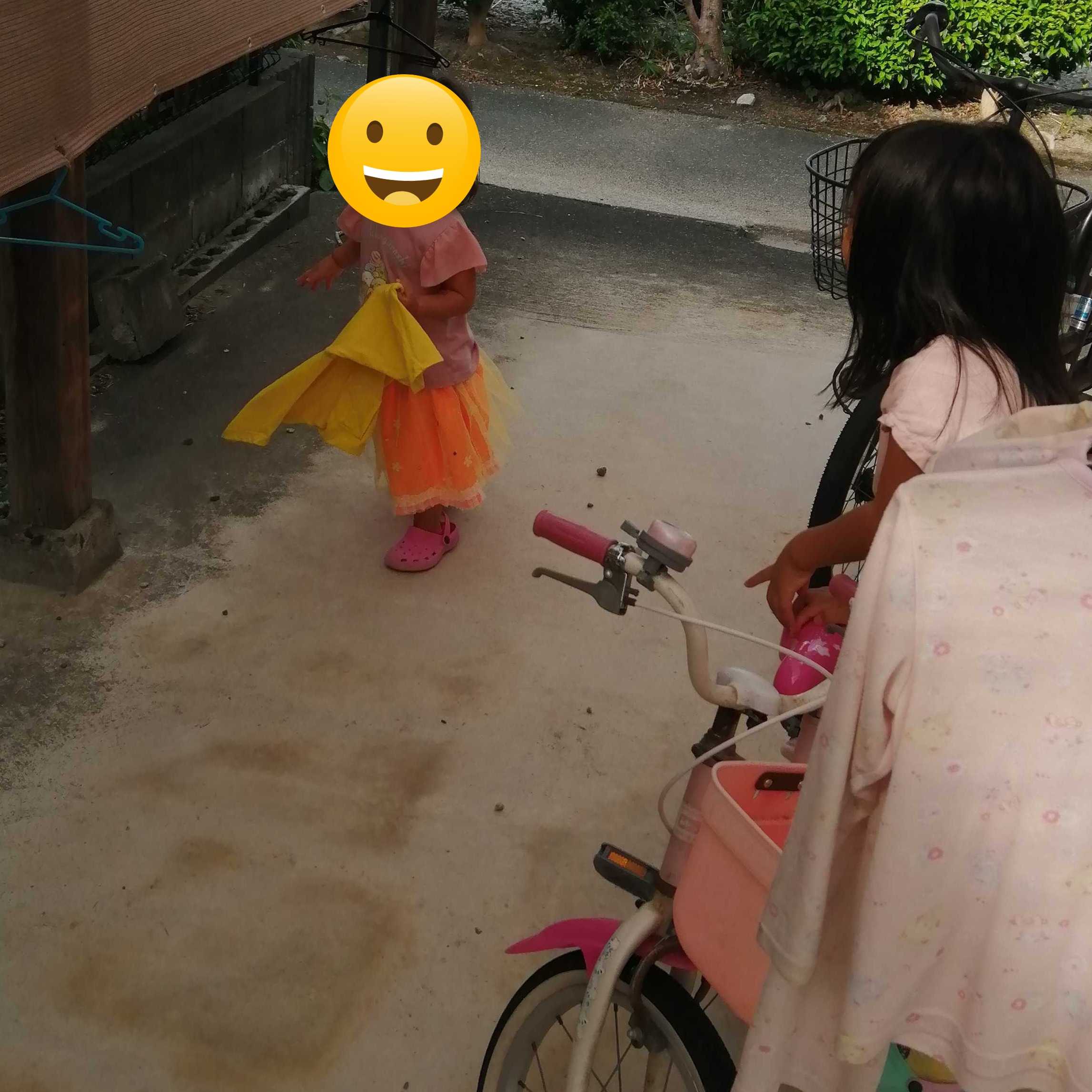 今日はおねえちゃんも家にいたので、庭で3人で洗濯干しです