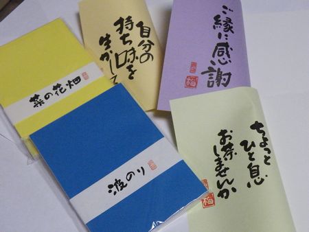 お帰りなさい 今日は雲が多い空ですが傘をささずに済みました。湿度は高いですが 時折そよ風が吹き 気持ちの良い日でした。 先日丸岡城へ行ったとき大きい本屋さんへ立ち寄りました。私の大好きなものばかり、うろうろ歩いて~!越前和紙を見つけました。福井県は越前和紙の本場、何かと利用できるので嬉しくなり10色入り100枚と40枚入りと2種類買い求めました。 以前お香を包んで入れたことがありますが今度は何に使おうかわくわくします。 紅柿荘ホームページhttp://www.kousisou.jp/index.htmlちょっとひと押し お願い! 人気ブログランキングへ