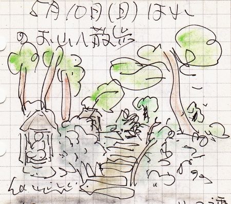 お帰りなさい!! 今日も穏やかな一日でした山代温泉万松園の88寺のお地蔵さんのお山主人は毎日お参りに行き 書いています主人の絵です手帳に書くので線が~!頂上から山代温泉を見渡せますし白山も美しく見えますhttp://www.kousisou.jp/index.htmlちょっとひと押し お願い! 人気ブじログランキングへ