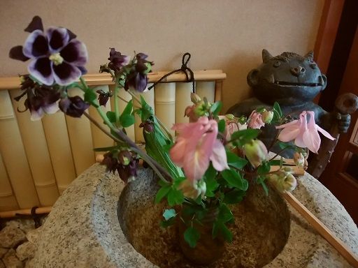 お帰りなさい!! 今日は初夏の様な一日でした紅柿荘玄関のオダマキの花です昨夜は久々にレッドでのお仕事でした少し遅い時間になったのですが以前の現役でお店に入っていたころのようにお客様と話が弾みアッと結う間に時間が過ぎました今朝はいつもの時間に目が覚め少し寝不足気味でしたが今朝のお見送りは美味しかったと言っていただきうれしいお見送りでしたお昼にしばらくお昼寝をしました元気回復です!!紅柿荘と和田酒店のホームページを見てくださいね!!見てください紅柿荘ニューホームページ和田酒店ホームページ ちょっとひと押し お願い! 人気ブじログランキングへ
