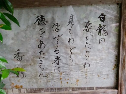 お帰りなさい!!今日は時折雨が落ちる不安定な一日でした福井県の白龍様へ主人とお参りに行ってきました此処のとこ不安のことが沢山あってもやもやしていたのですが主人が白龍さんへお参りに行こうと誘ってくれました前回行ったときは日野正平さんが心の旅で訪れテレビで放映された後で何人か他の人がお参りされていましたが今日は誰もいませんでした主人とゆっくり手を合わせてお参りしてきました帰りに竹田の谷口屋の油揚げを買って帰りました紅柿荘と和田酒店のホームページを見てくださいね!!見てください紅柿荘ニューホームページ和田酒店ホームページちょっとひと押し お願い! 人気ブじログランキングへ