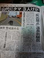 お帰りなさい!!久々の雨の朝でした昨夜からの雨今日の午前中には強い雨が降っていましたが午後から少しずつお天気回復しました気温は急に下がってきました今日もクマ情報がメールで入ってきます小学生は集団下校をし広報車がクマ注意の報じていました最近は野良犬、離して飼っている犬はいませんクマやイノシシの野生動物は畑や里山によく出てきます加賀市の畑や田んぼの周りをネットで覆ってあるところが見られます先日は実家の山中温泉ではサルが出て困るとか野生動物の天国が現実に起きています紅柿荘 ホームページ和田酒店 ホームページちょっとひと押し お願い! 人気ブじログランキングへ