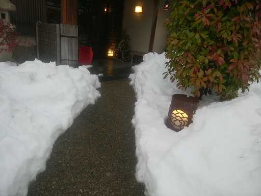 お帰りなさい!!昨夜は深々と雪が降り積雪量は増えましたお隣福井県と 富山県の高速道路で対応上福井県はここから普通なら20分のところ大変です雪の中の紅柿荘です今日は一時空が晴れ紅柿荘の屋根には大きいつららが下がっていましたいかに寒いか 驚きです玄関先の門灯は雪の中になっています今日は朝一番の仕事が自宅と紅柿荘の間の除雪です風があったので吹き溜まりになり1mぐらいの積雪のところもありました何とか人の通れるように除雪しましたそのあと紅柿荘の玄関先を除雪しやりだしたら止まりませんが雪は少なくなりませんコロナと寒波とダブルパンチです紅柿荘 ホームページ和田酒店 ホームページちょっとひと押し お願い! 人気ブじログランキングへ