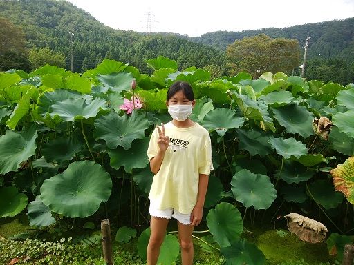 蓮の中に入ったら隠れてしまうほど大きい蓮でした