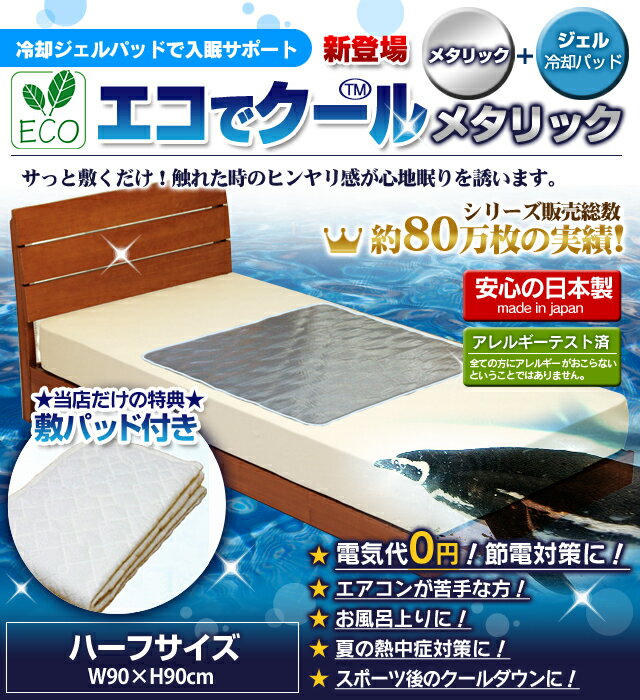 特典付! 【安心の日本製★エコでクール メタリック】夏の節電対策に!2011年版は冷却ジェルパッドとアルミで冷却効果アップ!/ハーフサイズ90×90cm寝具、業務用商品の総合商社だから出来る、この価格とこの品揃え!当店は、作り立てをお届けする受注生産システムを採用。オーダーを頂いてからお作りしているので、少々お時間を頂いております。大変申し訳ありませ ...