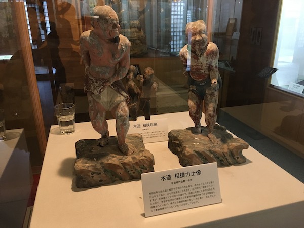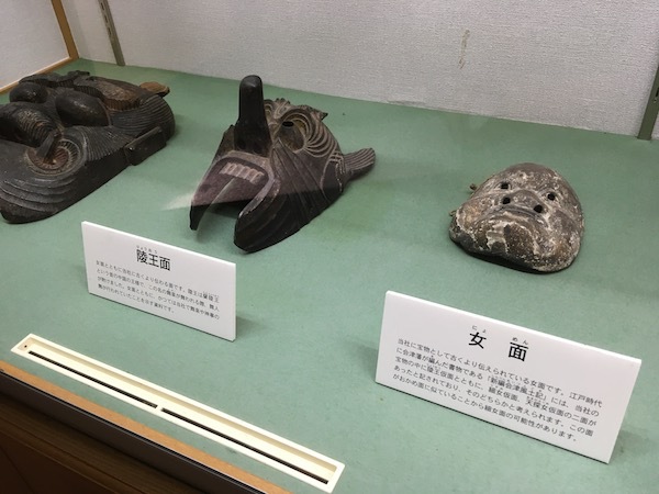 このような木造やお面は、当時相撲や舞楽や神事の舞が盛んに行われた証拠。