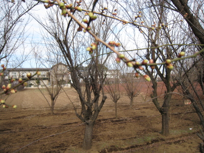 先月の30日、ウチの犬サリーが具合が悪くなって以来、良くなったかに見えた1日を除いて行くことのなかった散歩に、今日は一人で行きました。いつもサリーと歩いていたので、一人だと何とも張り合いがないです。いつも歩いていたコースのひとつの中に、このあたりでは花が一番早く咲くと思われる梅畑があります。実をとるためのものでもなく、手入れというほどのことはしていない畑です。つぼみが膨らみ始めて、白いものも見えるようになっていました。もうすぐ花が見られることでしょう。花はとても多く咲きます。あたり一面に甘い春の香りを漂わせて「サリー君、いい香りだね」などとよく話しかけながら深呼吸をして通ったものです。今は、一人で散歩です。「ウチの犬サリー」は1月12日「天国の犬サリー」になりました。
