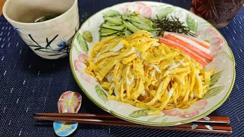 錦糸卵を乗せすぎて 中身が何だかわからないお素麺(笑)