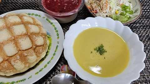 セブンイレブンサクフワメロンパン、プレミアム冷たいスイートコーンスープ、