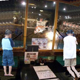 母と夫と私と、妹夫婦と姪甥…7人で新宿「ざうお」へランチに行ってきた。自分で釣ることもできるお店。ざうお初体験の「びき」と「つー」は大興奮。釣竿片手に必死に釣りまくり。鯛なんかは普通に注文すると3360円が自分で釣ると2499円。確かに安くなる…釣ったらそれだけ…安くなるんだが…無料じゃないんだな…。もうやめてー。釣れちゃった鯛をこっそり放流しようとしたけど駄目。うへーん…仕方ない…釣れ釣れー!!鯛、アジ、いさき、サザエなんかを数匹づつ釣って煮付け、塩焼き、お刺身、つぼ焼き、お味噌汁…。最高に美味でした。都庁の展望室に上って晴れ渡った景色も堪能しました。しっかし、高いランチになりましたが…ま、いっか。へっへっ。いつもありがとうございます。感謝してます。