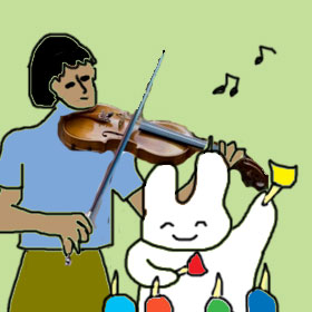 さて、宿題披露の順番が回ってきた新入生の斉藤くん。何かをさらさらっと広げました。………何?あれ…。…うそっ…楽譜だ…。あいたたたー。…なんじゃ、あの長い楽譜は…。入ったばかりだから加減がわからなかったのか…。一人であの長い楽譜を吹くの…?すると…先生がおっしゃいました。「これ…ピアノの伴奏譜?君…弾けるの?」「はい」「…じゃ、リコーダー部分は初見だけど私が吹くから、伴奏して」そして、先生のリコーダーと斉藤くんの伴奏が始まりました。最初はざわついていた教室。………え?すごい…何これ。愛されてるっ!!愛されてるよ!あなたたち!!!!!音楽の神様から愛されてるオーラ一杯で信じられないような色が出てるって感じ。やばい…うっとり。演奏が終わり、先生が教室のみんなに呼びかけた。「次の発表会の曲、斉藤くんに作曲お願いしませんか?」みんなで斉藤くんを青田買いしようっ!ってことに。全員賛成。そしてその日の授業は終わりました。つづく間近でミューズの降臨を見たような…。そんな気分でした。