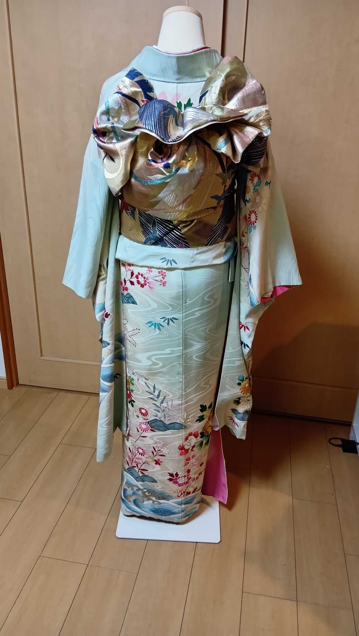 こんにちは今日の帯結び袋帯でニ重太鼓です🌿今日も1日 感謝🙆ありがとうございました💗🍵🍣🍓☕