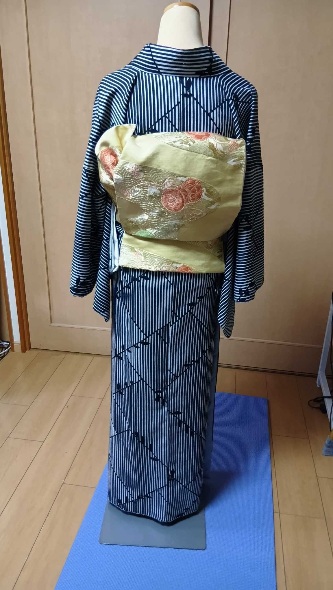 こんばんは今日の帯結び袋帯でニ重太鼓です🌿今日も1日 感謝🙆ありがとうございました💗🍵🍣