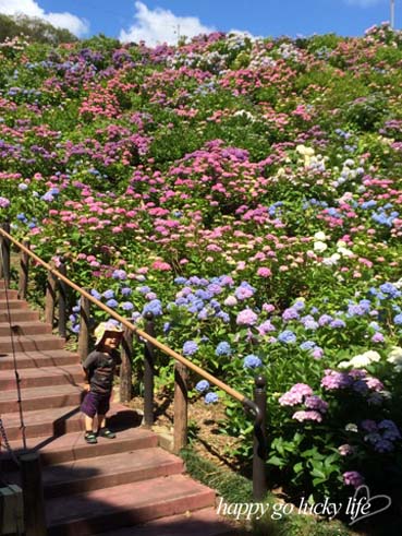 6月13日に、蒲郡市にある形原温泉の『あじさいの里』に行ってきました。 付き添いで行ったのに、予想以上のキレーさにテンションUP! アジサイって、いっぱいあると、こんなにキレーなんだ!って感動一眼をもって来なかったことを、すごい後悔してましたこんなに、キレーなのに、植え替えをしたので、植え替え前に比べると迫力がないらしい。前は、さらに「バーンッ」と迫力があったらしい。株が成長してきたら、どんだけキレーになるんだ!? 一眼で写真撮影している人もたくさんいましたよ。うらやまし~グルーっとまわるコースは、散歩にちょうどいいくらいで気持ちいい 途中、キレーな鯉がいました。近くのお店で、鯉のエサが100円で売ってました。近頃、グレーの鯉しか見てなかったので、ひさびさにキレーな鯉を見れて嬉しいやっぱ、鯉はこーじゃないと あじさいの里には、変わったアジサイもたくさんありました。アジサイ大好きなので、大興奮うちに欲しいよ~ お店でも、アジサイ売ってます。一番すきだったのは、『ダンスパーティ』というアジサイ。いろんな種類がありますが、私は、コースの途中にあるお店の、八重のタイプが好み実物は、写真よりも、くすんだ落ち着いた色で、すごいオシャレカワイイ花でした。値段が、もう少し安ければなぁ… 他にも、カワイイあじさいがたくさんあって、アジサイ好きの私には、欲しくてしょーがないのが、いくつもありました。やっぱ、アジサイはカワイイ 『あじさい祭り』とは…毎年6月での1ヶ月間、形原温泉・あじさいの里に植栽された、5万株のアジサイが咲き乱れる中で、あじさい祭りを開催いたします。夜間はライトアップされて、昼間とは違った風情でお楽しみできるとともに、運が良ければあじさいの里に住むゲンジボタルを見ることもできます。【期間】2014年6月1日~6月30日 8:00~21:30 HPはコチラですhttp://www.katahara-spa.jp/
