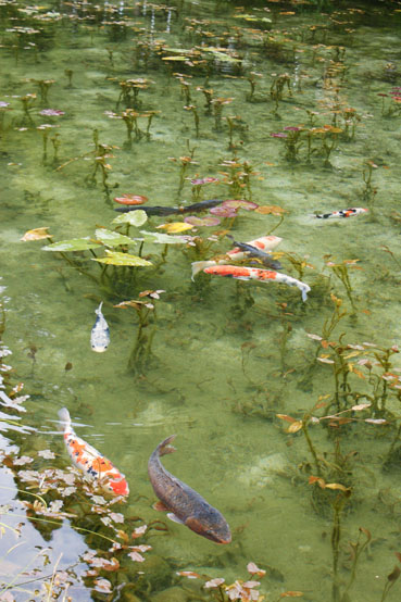 7月2日(土)に、岐阜県にある、通称「モネの池」に行ってきました。蓮の花は、あまり無くて残念だったけど、水は、期待通りの透明感! 水の中の鯉がこんなにハッキリ見えるのって、よくよく考えてみるとスゴイこと! 特に、橋の正面辺りが、きれい光が当たって、透明感が一番わかります。赤紫の葉っぱも、いい感じ 鯉の中には、頭にハートマークがある子も!この子が、なかなか葉っぱの下から出てきてくれないんだな…根気よく見つけてください テレビや新聞でよく紹介されているので、人はたくさん!!みんな、鯉待ちをしながら写真を撮っているので、写真撮る時間が長いんだな…この日も、テレビの撮影してましたよ。この辺りは、あじさい街道といってあじさいの花が道沿いに植えてあって、あじさいもキレーでしたよ。 通称「モネの池」と呼ばれてるこの池は、岐阜県関市板取の根道神社の鳥居の脇にある「名もなき池」という所。有名なので、無料駐車場も何か所かあって、交通誘導の人もいました。迷惑駐車も多いのか、道にパトカーも2.3台停まってました。 蓮の花は、昼ごろに開きはじめるようです。 この日は、せっかくなので郡上八幡にも寄ってきました。川が気持ちよかったし、そばと鮎も食べて満喫