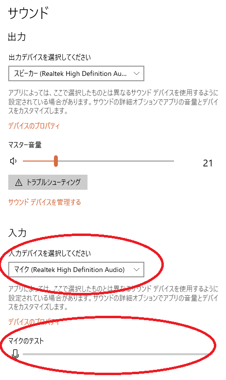 マイク端子からのマイクの音声は、「サウンド」のところで「マイク」を選べば、OK!
