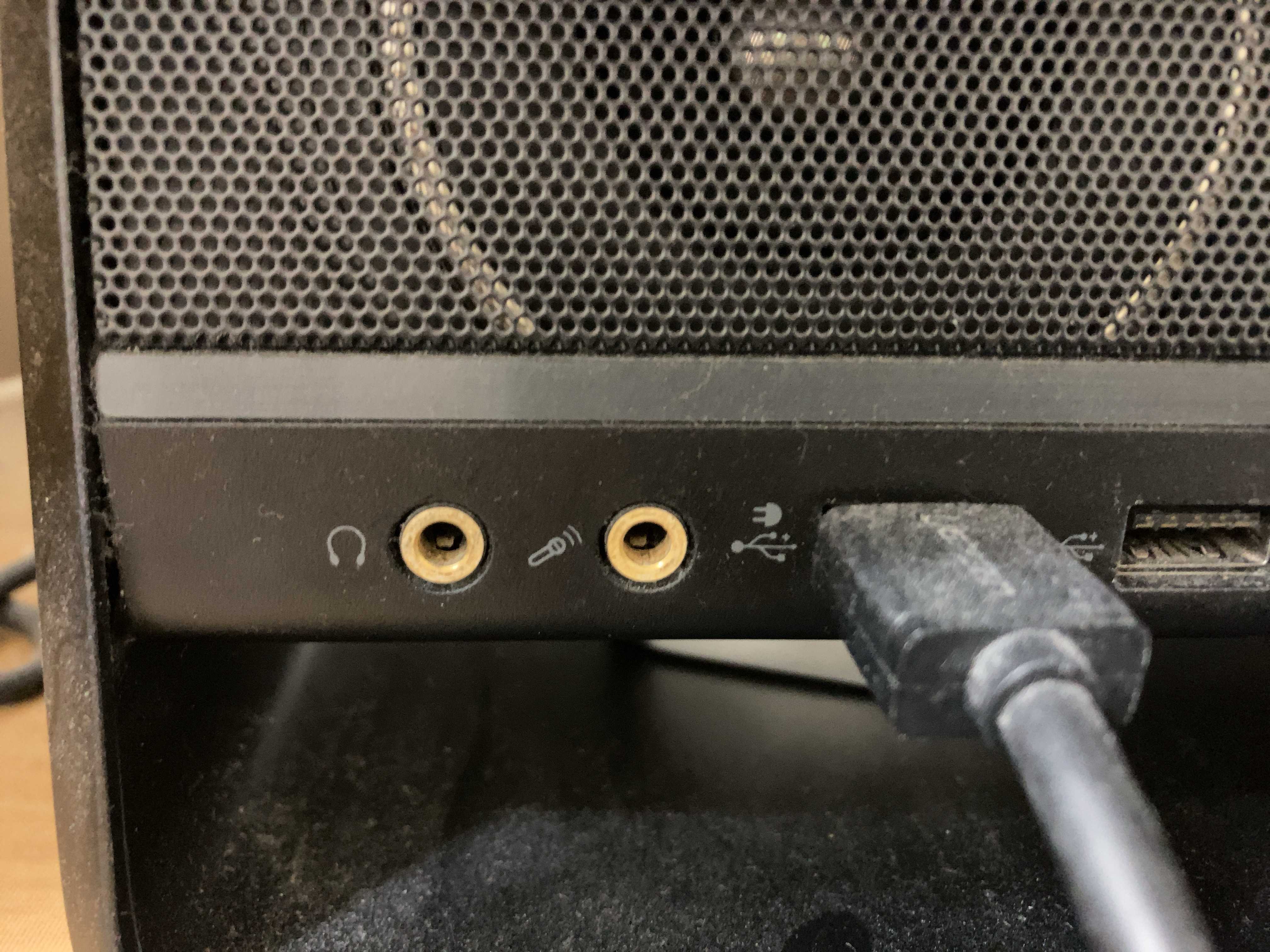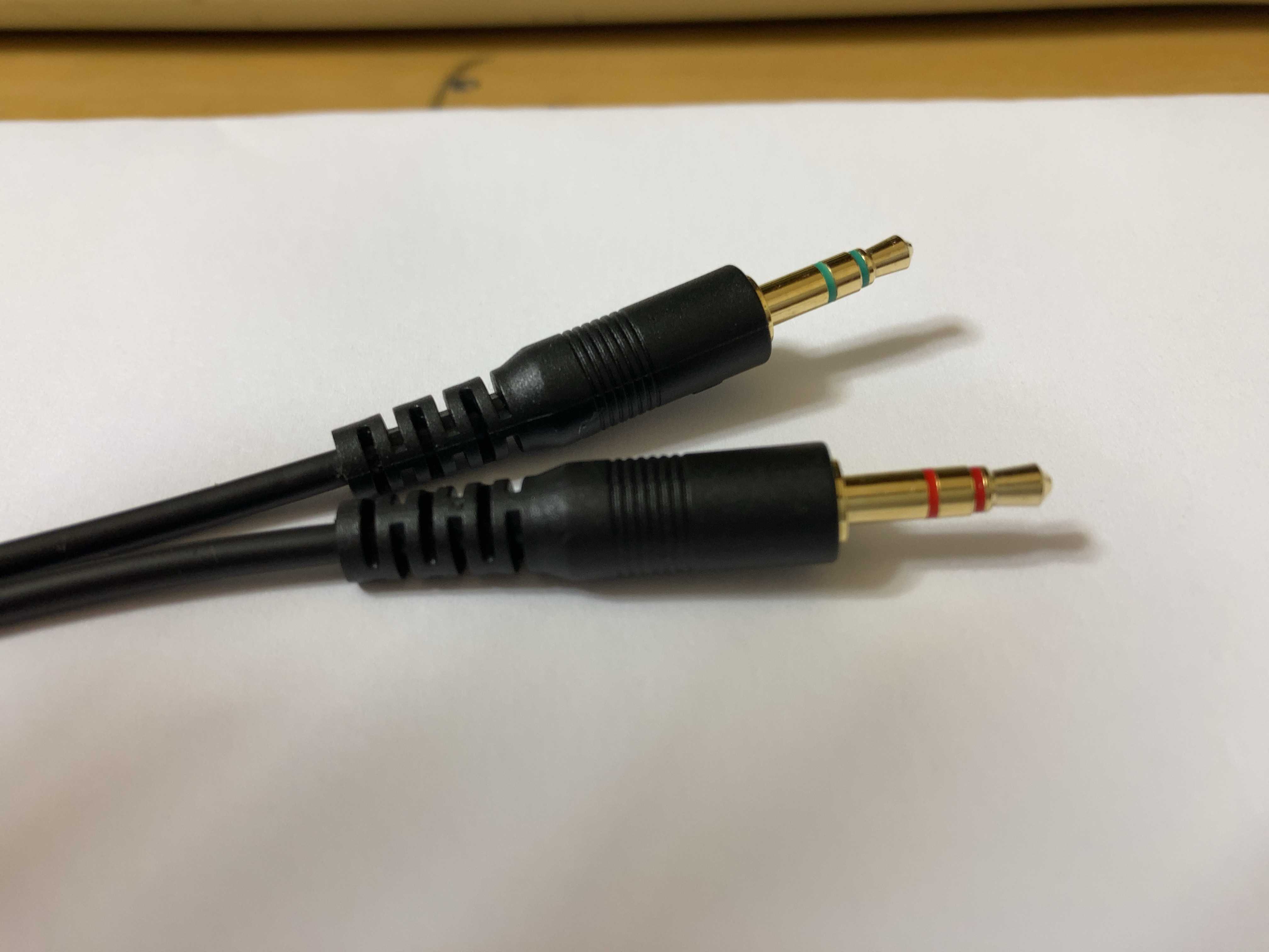 ↓PCのヘッドホン端子とマイク端子に刺しました。