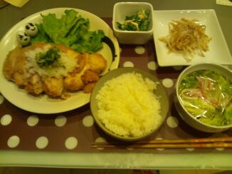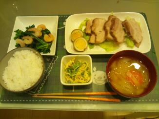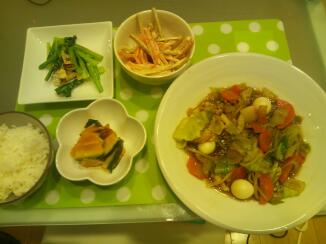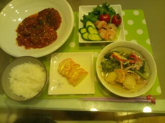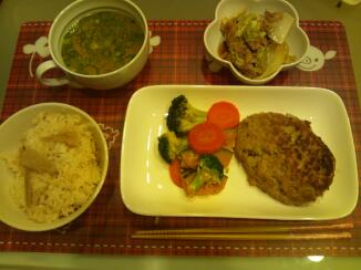 ・煮込みハンバーグ ・ホタテと菜の花の煮びたし ・エビサラダ ・かまぼこ焼き(←母の味?かまぼこをマヨネーズで焼くだけ) 今日は有給休暇をもらって、友達の家に遊びに行ってきました 友達の赤ちゃんと遊んだり 友達の沖縄旅行のアルバムを見せてもらったり あっという間に時間は過ぎました。 そしてママになるっていいなあと思いました そんな今日の晩ご飯、和食なのか洋食なのか よくわからないことになってますが、これには理由がありまして 今日は鶏のから揚げをしようと思って 朝に下ごしらえの準備をしていたら タレに漬けこんだ鶏肉を冷蔵庫に入れ忘れたまま外出を・・・ 急遽、お弁当のために冷凍保存していたハンバーグを使ったわけです。 今日の支出 交通 1,680 手土産 1,575 計 3,255今月計 52,742今日の体重 52.5キロ(-0.5キロ) 明日で駅までの原付出勤は終了です。 明後日からは、駅まで自転車通勤 ダイエットうまくいきますように。