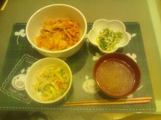 ・豚キムチ丼 ・きゅうりとカニカマともやしのサラダ ・菜の花のわさびマヨ和え ・中華スープ 今日はまだ寒かったですが 菜の花を見ると 『お、春がやってきた☆』って思います 春は私の1番大好きな季節です。 今日はガッツリ食べたくて キムチ丼にしました 今は駅まで原付でブーンと通勤してるんですが ダイエットも兼ねて 春になったら駅まで自転車で通勤しようと思い始めました 3月まですでに契約してしまってるので スタートは4月からになる予定です 応援、よろしくお願いしま~す 今日の支出 食品 5,670 医療 1,170 計 6,840今月計 49,487今日の体重 はかり忘れ・・・絶対増えてそう