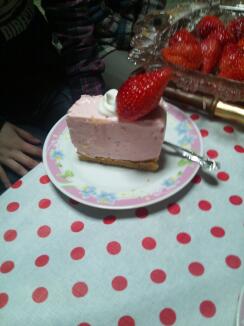 妹の就職祝いに手作りケーキを作りました。 数時間後には会えるというのに 朝から父や妹からたくさんメールが来て クッキングシートを敷くのを忘れ ちょっとレアチーズと底のクッキー部分が崩れてしまってるけど ま、それも手作り感満載ってことで 味はめちゃくちゃおいしかったです レシピはこちら→ 簡単!いちごの春色レアチーズケーキ by AyakoOOOOO