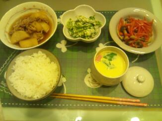 ・豚肉と大根の炒め煮 ・菜の花のわさびマヨ和え ・にんじんとしめじの甘辛煮 ・茶碗蒸し 茶碗蒸し、生まれて初めて作りました。 意外と簡単でおいしかったです。 これからは外食しなくても、茶碗蒸しが食べられる 茶碗蒸し大好きな私はうれしいです 大学時代の友達がもうすぐ結婚式を挙げるので その余興のメッセージビデオとメッセージブックを作るため 友達数人で集まってきました おもしろいビデオメッセージがとれたし かわいいメッセージブックが出来上がりました 今日の支出 電車代 520 昼食代 830 カフェ 680 計 2,030今月計 26,020カフェ代が痛い出費です