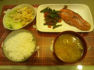・塩鮭のみりん漬け ・いんげんとにんじんの胡麻和え ・ちくわのマヨ炒め ・豚汁 塩鮭のみりん漬け、すごくおいしかったです。 いつもは土曜日はお仕事。 だけど、今日は祝日でお仕事がお休みだったので、休みでした。 旦那のスマホの調子が悪くて、ドコモショップに行きました。 最悪買い替えかも・・・となってビビりましたが 同じ機種の新品のものと交換していただけました。 ホッ。 買ったばかりのスマホ、大事に使ってよ~ 今日の支出 食品 2,530 ミスタードーナツ 600 計 3,130今月計 23,990