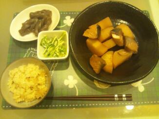 ・ぶり大根 ・こんにゃくの煮物 ・小松菜の胡麻マヨネーズあえ ・白菜の浅漬け(写真撮り忘れ) せっかく作ったおかずを撮り忘れるという情けない凡ミス今日は旦那の好きなぶり大根。 お仕事が忙しくなったと言っていたから 頑張ってもらうために作りました。 でも私はぶりが嫌い、大根だけ食べました お味噌を買い忘れてお味噌汁なしの和食ごはん。 お味噌きらしちゃったらボンビーになるという迷信があったなあ。 確かに我が家はボンビーだ、悲しいけど当たってるかも 今日の支出ガソリン 539 食費 3,816 日用雑貨 310 計 4,665