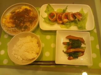 ・鶏肉の野菜巻き ・もやしのたまご中華あんかけ ・小松菜とさつまあげのからしあえ 本当はここにお味噌汁をプラスしたかったのだけど 今日は寒くてお味噌を買いに行けなかったので、これで我慢・・・。 毎日1汁3菜が目標です 実母の誕生日プレゼントを楽天で買いました。 いろいろ迷ったあげく、カニに決定 お鍋でもしてもらおうと思って。 ポイントが3,000円ちょっとあったので、1,700円で買えました。 お得な気分っ 今日の支出 回数券 3,000 実母の誕生日プレゼント 1,700 計 4,700 今月計 13,694