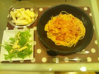 ・カニのトマトクリームソースのパスタ ・油揚げと水菜のサラダ ・長いもとたまごとハムのにんにくマヨサラダ 家族に、実母の誕生日プレゼントはカニだとメールをしたら 実母よりも早く 実父と妹から喜びのメールが返ってきました、早っ!(笑) で、影響されたってわけじゃないと思うんですが 今日の晩ご飯はカニのトマトソースパスタでした 作り方は本当に簡単なのに まるでお店の味がだせるこのパスタは私のお気に入りです 今日の支出 食品 1,126 マッサージ 2,500 医薬品 3,540 計 7,166 今月計 20,860 毎日、健康のためにLG21のヨーグルトと納豆を食べてるんですが ヨーグルト代が結構どど~んと家計を圧迫しています。 続けるべきかどうか・・・悩むところです