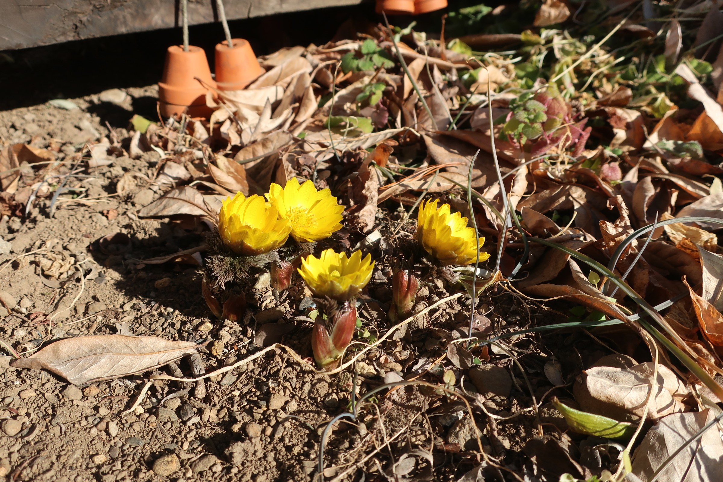 今年の冬は暖かい。 毎日氷点下5度前後、ちょっと寒い日でも氷点下8度くらい。(笑)いつもならこの時期、最低気温が氷点下2桁になるのが普通なのに、今年は今のところ氷点下2桁になったのが1日しかない。いつもなら12月中にカラカラに枯れて、一塊の茶色の傘みたいになるイモカタバミが、今年はかろうじて緑色を保っている。玄関前のヒメコブシの根元。南からの日差しがある、一番暖かいところなんだけど、それにしても今年はそうとう暖冬なんだね。なら、福寿草はどうした?!去年は1月末には芽吹いてたはず!と思って見たら、芽吹いてる!ヒメコブシの下、枯れ葉の布団をかき分けてみたら、ニョキニョキ。一番早い子はもう、黄色い蕾が綻び始めている。去年は3輪咲いたけど、今年はどうかなぁ〜。🤗福寿草が、もう春なんじゃない?と出てきたのはいいけど、明日は南岸低気圧で降雪予報が出ているんだよなぁ〜。😱オマケに立春寒波で、連日氷点下2桁の予報がずらり……。🥶どうかどうか、ほどほどで済みますように。🙏