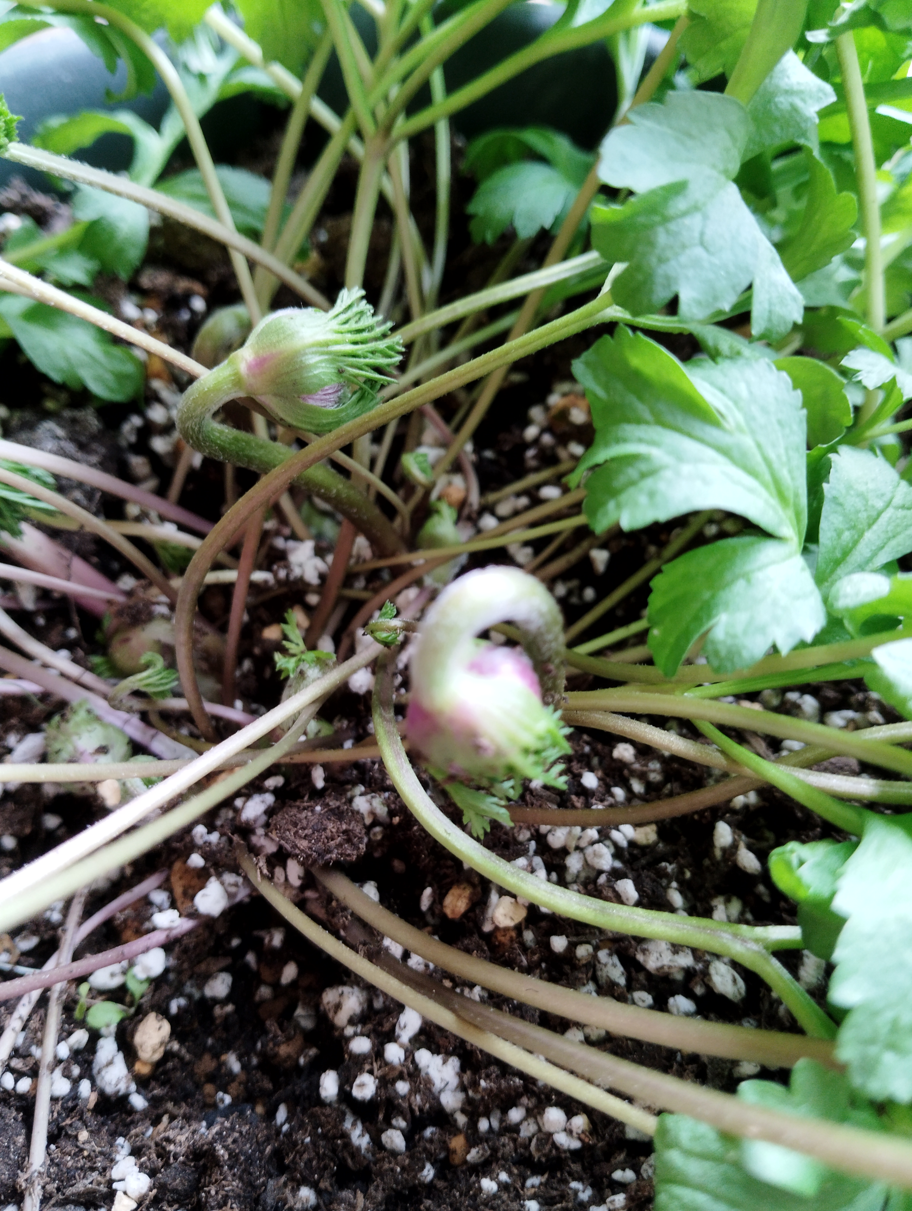 冬場はお花の変化が無いのと不審者対策とで、ガーデニングブログから遠ざかっていたこの頃。(笑)久しぶりに寝室組のアネモネの鉢を見ると、赤っぽいものが見えた。おお!蕾があるじゃ〜ん!少しでも太陽光を浴びようと、片側に葉っぱが密集している。一応鉢は定期的にクルクル回してたんだけどなぁ〜。😅サボってたかなぁ〜。🙄💦よくよく見れば、大小7つの蕾があった。💕それならと廊下組のラナンキュラスとラックスも見たが・・・。葉っぱはモリモリになってきたが、寝室組より少し寒いところなので、蕾は見つからなかった。🫣でもいいの、急かして凍みたら泣かなきゃだし、お楽しみは3月に取っておこう。✌️何しろ今頃になって、連日氷点下2桁の当地方。 雪は降らないけれど、キンキンに冷えている。🥶「リビングから出ると、そこはスケートリンク」・・・これは婿君の名言だ。🤣