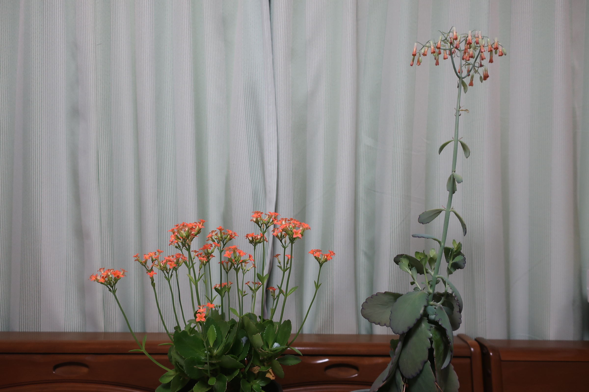 そんな寒さの中、ほとんど動きのないわが家の植物たちだが、特別扱いのリビング組のカランコエが、唯一の色を見せてくれている。