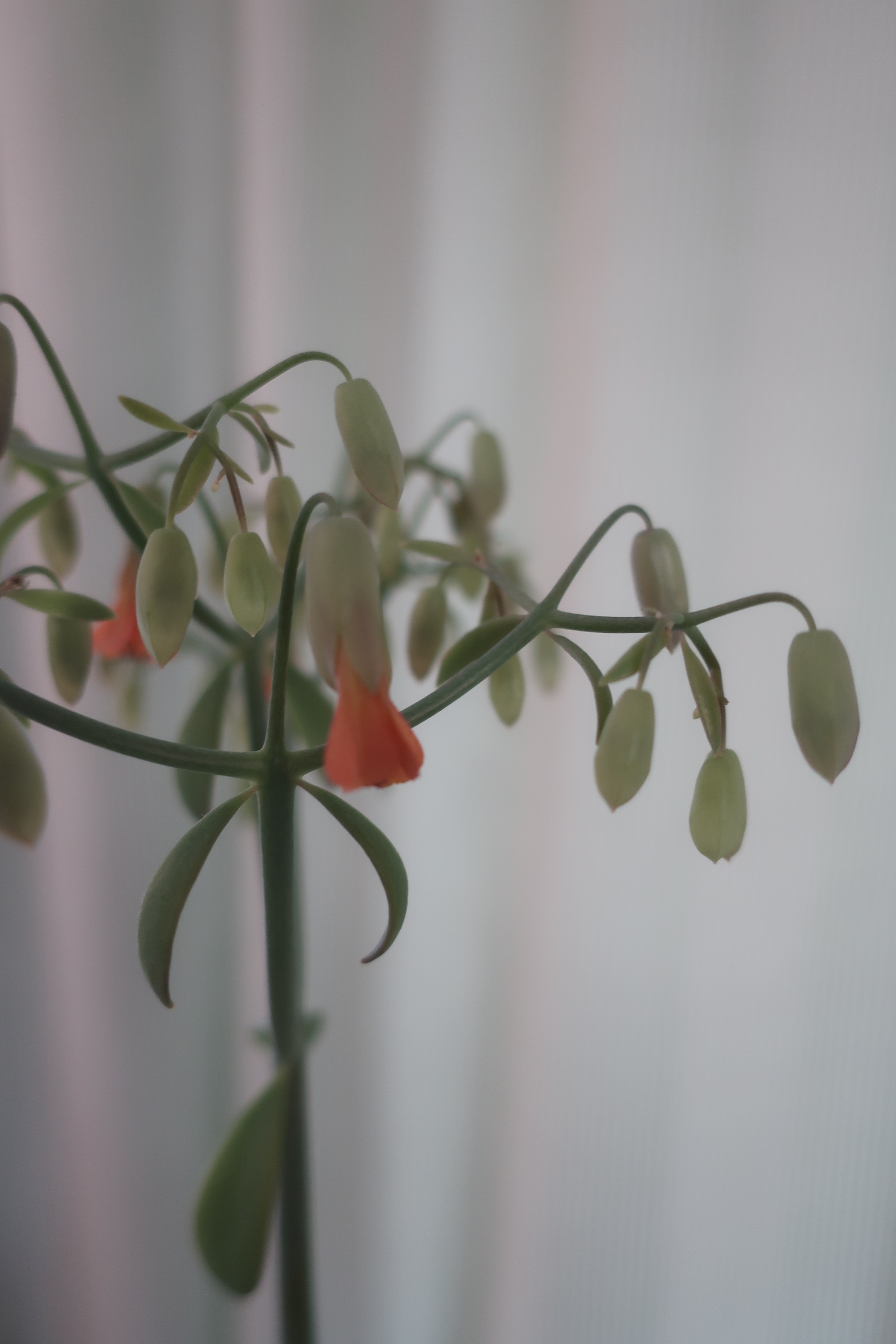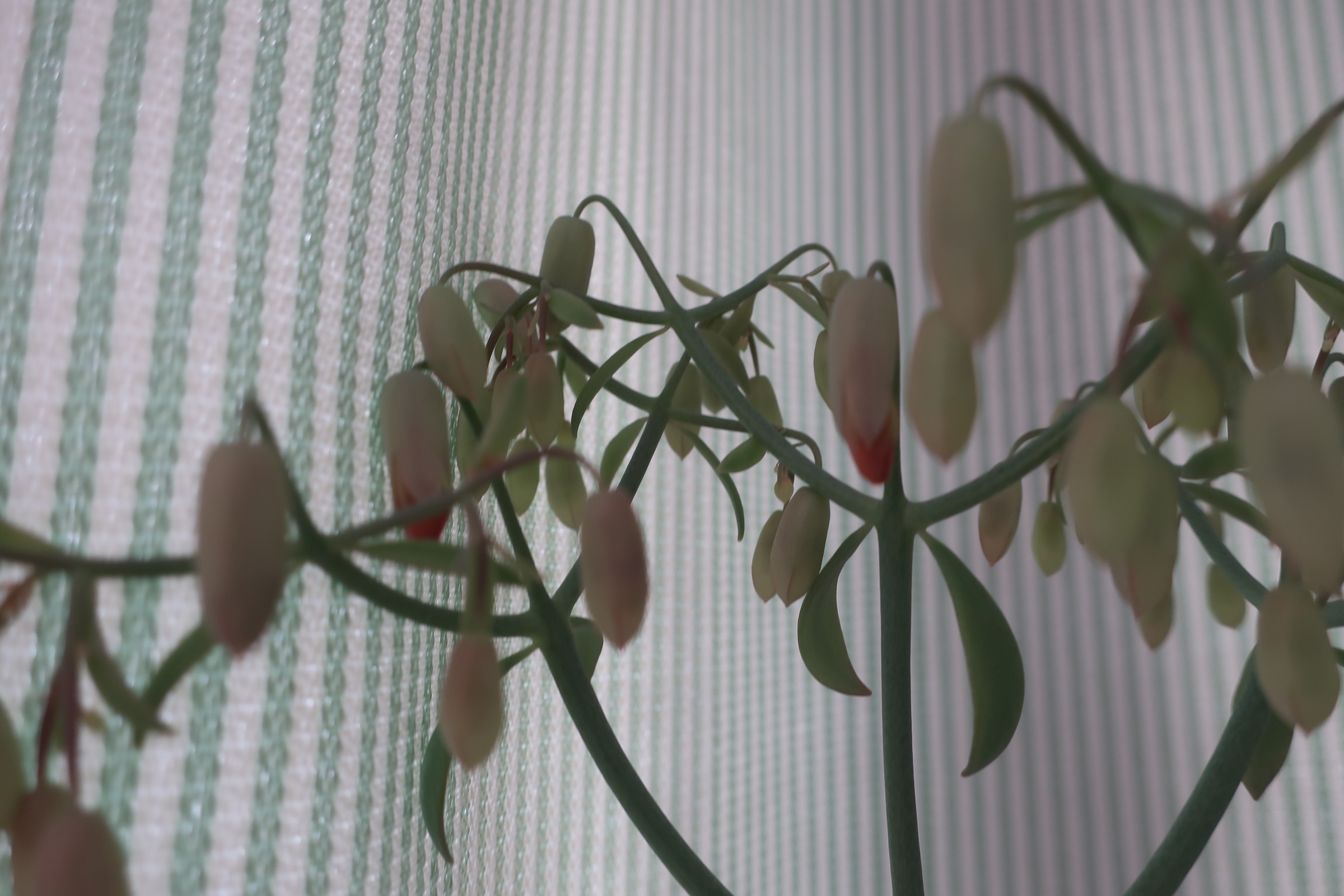 カランコエ・リンリンの蕾の先端が、チョビっとオレンジ色を帯びてきたところ。