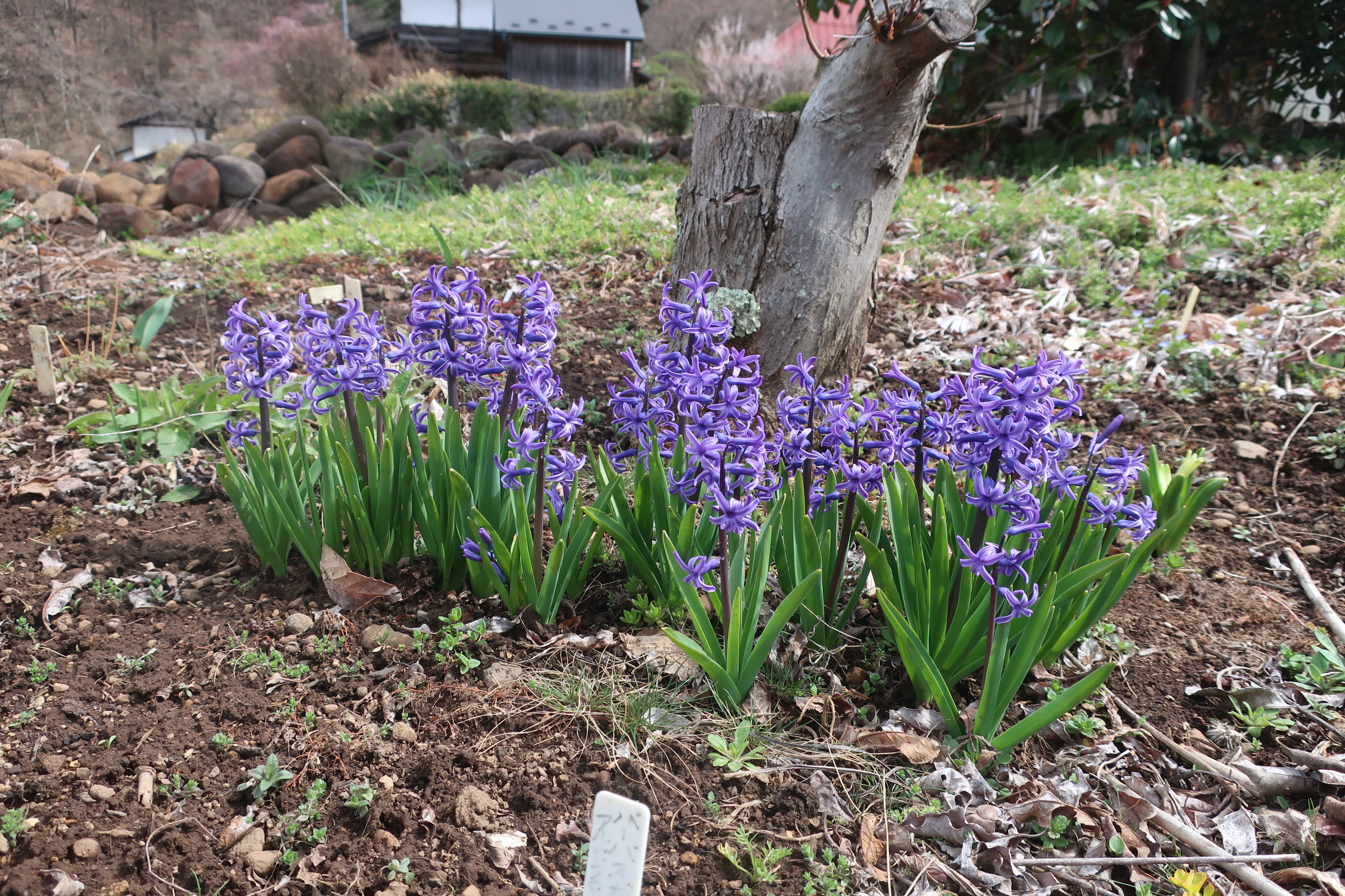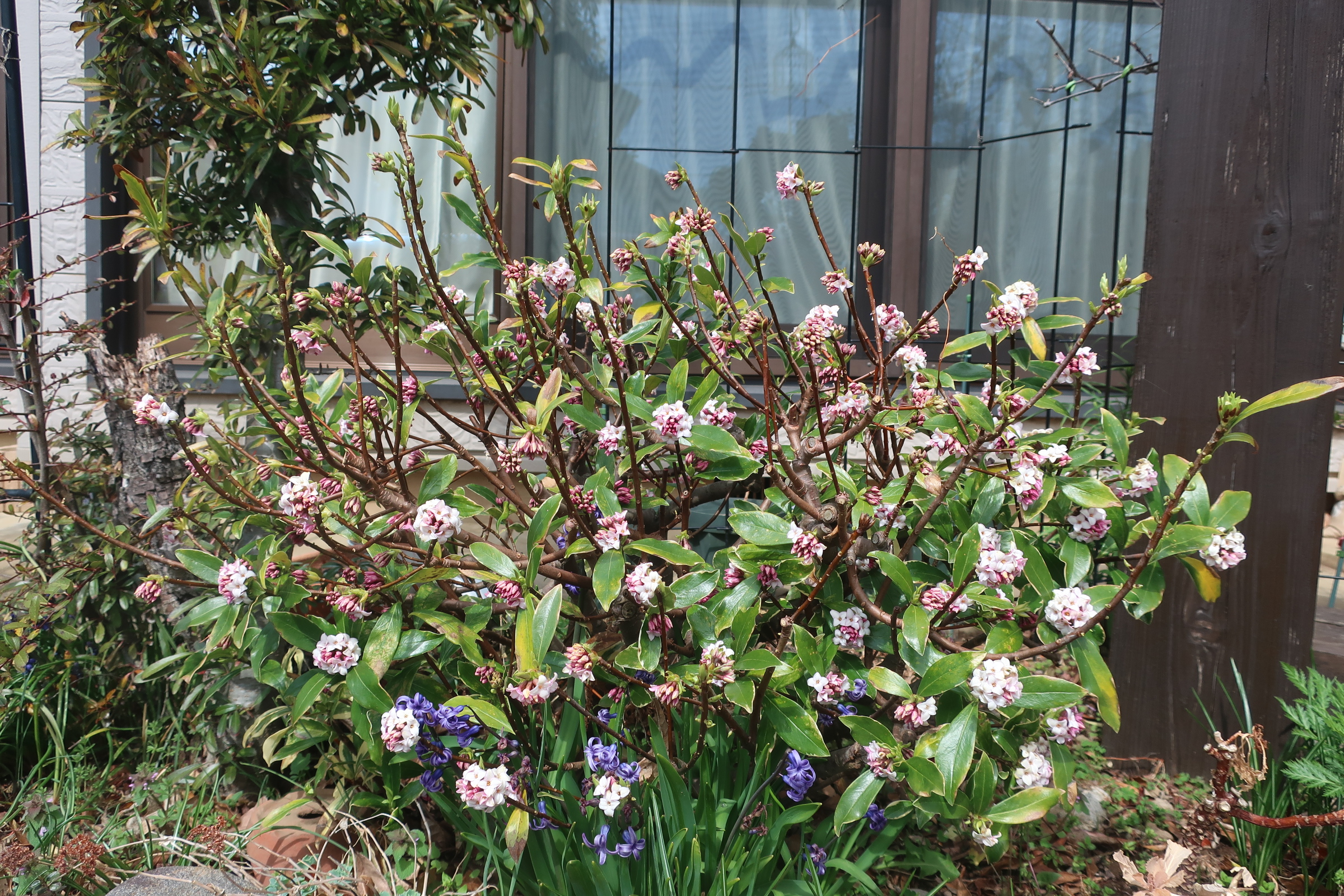 その向こうに沈丁花が、いい香りを振りまいて今年はたくさん咲いた。 霜の被害もなく、今年はいい感じ。