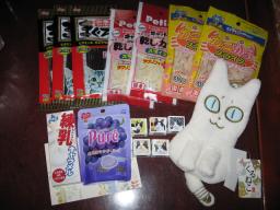 6日の午前9時前に届いたよ~。じゃず猫さんから、(=^-^=)達にも頂きました。ありがとうございます。水曜書店←じゃず猫さんのブログです。色々と贈って頂きました~~。(*^_^*) 上はグミキャンデー下は練乳キャラメル・チロルチョコ・猫のポーチ。猫のポーチは、ふわふわで触り心地がすんご~~くいいですョ。チロルチョコ、猫の包み紙になってます。(画像がボケてますが)こんなチロルチョコって、見たことないです。珍しいチョコを(o^o^o)あ(o^-^o)り(o^o^o) が(o^O^o)と(o^.^o)う猫のおやつを片付けようとしてると、デコ♀が来て、匂いを嗅いでま~す。どれが気に入ったの~? その後にボク♂もやってきた~。見てただけ~~。じゃず猫さん、ありがとうございました~。σ(^_^)アタシの体調は去年の12月から、五十肩になってる右肩と右腕の痛みが続いて。。。それに加え、3日前から、右の手首と、少し上の手の甲が少し腫れて痛みます。原因は多分、ケージ用の毎日の湯たんぽの蓋の開け閉めだと思うんだけど・・・。湿布して、早く治さないと~~。6日は何かあったかな??朝から晴れたり曇ったり~~。 今日は、風が冷え冷え~((´д`)) ぶるぶる・・・さむ~~い一日になりました。様子見が続いてる(=^-^=)達は、現在4匹。(ふく♀チビスケ♂大♂雄♂)まだまだ手がかかってます。申し訳ないですが、暫くは、いつまでになるのか分からないですが、読み逃げが、多くなりそうです。本日の“〆(^∇゜*)カキコ♪は、できたり、できなかったり~。レスのお返事は暫くは無理みたいです。度々で、ごめんなさい。