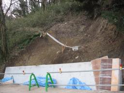 左からふく♀チビスケ♂寅♂は、ホットカーペットの上の日当たりの良い場所にいてる。 右の寅はコタツの中に身体半分突っ込んでるのかな?┐(;ΘoΘ)┌ =3 ハァ…3匹揃って、こっち向いてくれないですねぇ~。難しいですねぇ~。去年7月に家のすぐ裏山の土砂崩れで12月22日から土砂崩れの工事が始まった~と、去年12月27日の日記に書いた!今年1月9日の工事の状況です。枠を外したコンクリの壁?ができてる。1月12日で土砂崩れ工事完了?地肌の見えてる下の白いのは、布みたいなのを上から網みたいなので、覆ってるだけなんだけど・・・。(~へ~)う-ん、上の方は、何にもなし~~なんだけど・・・。又雨が降ると、むき出しだから、崩れそうなんだけど、大丈夫じゃないように見えるんだけど・・・。工事車両も全部、引き上げてるし・・・。これで終わっちゃうのかなぁ~?13日は何かあったかな??今朝も((´д`)) ぶるぶる・・・さむ~~い。寒さが続いてますよ~。サムイニャ♪.....(((((ヾ( o=^・ェ・)o ┏━┓←コタツ最低気温はマイナス3.7度~。冷えすぎ~~。朝起きて、外の道路を見ると、アチコチに霜が残ってるし、道路はまだ凍結してる場所が多くて、塩を撒きまくり~でした。今日も、晴れたり曇ったりの空模様だったけど、風が冷たすぎ~~の一日でした。様子見が続いてる(=^-^=)達は、現在4匹。(ふく♀チビスケ♂大♂雄♂)「ふく」♀、奥の歯を抜歯してからも、調子の悪さが続いてます。(口の中が普通の猫に比べると、狭い~と言われてます。)またまた\(>o