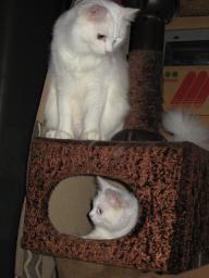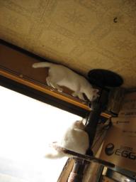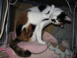 タワーのBOXの上に純♂。BOXの中で座ってるナツ♀。純♂上からBOXの中を見てるよ~。ナツ♀はまだ座ったまま~~。 純♂が上からナツ♀のいるBOXの中に手を突っ込んでま~す。ナツ♀純♂にBOXの中まで手を突っ込まれたから、ゆっくりできないから、出ようとしてるのかな?上にはまだ、純♂がいてる~。純♂場所を移動して、まだ、BOXの中のナツ♀を狙ってる~。ナッちゃ~~ん、今出ると、純が上から叩いてくるよ~。モグラタタキ状態になるよ~。21日は何かあったかな??今朝も((´д`)) ぶるぶる・・・さむ~~い。寒さが続いてますよ~。サムイニャ♪.....(((((ヾ( o=^・ェ・)o ┏━┓←コタツ最低気温はマイナス3.8度~。午前中は、晴れ~~。午後からは晴れたり、曇ったり~。晴れてるわりに、暖かく感じなかった一日でした。夜になって、冷え込んできてま~~す。様子見が続いてる(=^-^=)達は、現在4匹。(ふく♀チビスケ♂大♂雄♂)まだまだ手がかかってます。申し訳ないですが、暫くは、いつまでになるのか分からないですが、読み逃げが、多くなりそうです。本日の“〆(^∇゜*)カキコ♪は、できたり、できなかったり~。レスのお返事は暫くは無理みたいです。度々で、ごめんなさい。
