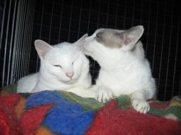 左あい♀の耳あたりを舐め舐め~してるシロッチ♂ まだまだ、あい♀を舐めてるシロッチ♂やっと終わって、こっち向いた~。16日は何かあったかな??今朝も((´д`)) ぶるぶる・・・さむ~~い。寒さが続いてますよ~。サムイニャ♪.....(((((ヾ( o=^・ェ・)o ┏━┓←コタツ最低気温はマイナス4.7度~。冷えすぎ~~。朝起きたら、一面真っ白~。今日も、晴れたり曇ったり~。時間と共に太陽が照ってる場所の雪は、溶けてた~。でもねぇ~気温が上がらない一日でした。((´д`)) ぶるぶる・・・さむ~~い一日でした。寒すぎると、ガタのきてる身体には堪えま~す。五十肩になってる右肩が痛む~~。少し動かしても痛むんだよね。はぁ~・・・(´・`)、厳しい寒さ、早く終わってくれないかなぁ~。様子見が続いてる(=^-^=)達は、現在4匹。(ふく♀チビスケ♂大♂雄♂)まだまだ手がかかってます。申し訳ないですが、暫くは、いつまでになるのか分からないですが、読み逃げが、多くなりそうです。本日の“〆(^∇゜*)カキコ♪は、できたり、できなかったり~。レスのお返事は暫くは無理みたいです。度々で、ごめんなさい。