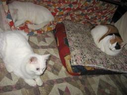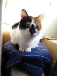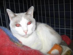 健♂湯たんぽの後ろあたりで座ってる。 大♂ここは、少し小さいミニホットマットの電源が入って、ヌクヌクで~す。(夜は座布団サイズのミニホットマットが入ります。交替で使ってます。)雄♂はケージの中に置いてる箱の上でちょこんと座ってる。オッドアイの健♂とブルーの目の雄♂大♂とは、兄弟です。12日は何かあったかな??今朝も((´д`)) ぶるぶる・・・さむ~~い。寒さが続いてますよ~。サムイニャ♪.....(((((ヾ( o=^・ェ・)o ┏━┓←コタツ最低気温はマイナス3.3度~。冷えすぎ~~。今日も道路はコチコチに凍結~。道路は、塩を撒きまくり~でした。なので、お昼はラーメン~~。 ラーメン作ったけど、生麺が失敗だった~。いつもの生麺じゃなかったから、ヽ(`*´;)ノ”マズイッ!!次回は、いつもの生麺使って作らないと~~。スープはいつもの、とんこつ味です。様子見が続いてる(=^-^=)達は、現在4匹。(ふく♀チビスケ♂大♂雄♂)「ふく」♀奥の歯を抜歯してからも、調子の悪さが続いてます。(口の中が普通の猫に比べると、狭い~と言われてます。)またまた\(>ooo