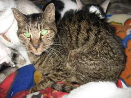 左あい♀とシロッチ♂は、仲良く手前の湯たんぽに寄りかかってる。 きじ丸♂湯たんぽの上に乗っかってる。左華♀とエル♀は、湯たんぽに乗りかかってる。元気♂は後ろで寝てたけど、フラッシュの光で起きて、こっちを見てる。去年11月27日の日記←下の方に湯たんぽがありま~す。この時は湯たんぽは3つ・ペットボトル湯たんぽは7つでした。この後すぐ、湯たんぽは6つ・ペットボトル湯たんぽは4つになりました。(やっぱり湯たんぽの方が、温かい時間が長いんだよね。)10日は何かあったかな??9日の夜から、10日の深夜に雪が舞ってたから、積もるかなぁ~?と思ってたけど、あんまり雪は降らなかったみたい。朝起きたら、太陽が照ってたから、もう雪は溶けてきてたよ~。でも((´д`)) ぶるぶる・・・さむ~~い朝でした。最低気温はマイナス2.5度~。まだまだマイナス気温は続いてます。今日は晴れたり曇ったり~。風は冷たく、寒い一日になりました。 様子見が続いてる(=^-^=)達は、現在4匹。(ふく♀チビスケ♂大♂雄♂)まだまだ手がかかってます。申し訳ないですが、暫くは、いつまでになるのか分からないですが、読み逃げが、多くなりそうです。本日の“〆(^∇゜*)カキコ♪は、できたり、できなかったり~。レスのお返事は暫くは無理みたいです。度々で、ごめんなさい。