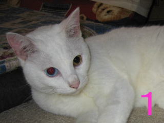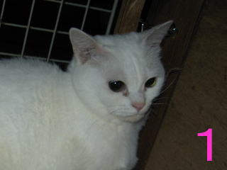 新クイズやってま~す。3つの画像から、仲間外れを探してね。♂♀に名前や兄弟姉妹、向きに、足の長短や足のあるなしも、関係なし~~です。どこかが、ちょこっと違ってます。仲間外れは何番でしょうか? 10日~13日まで、4問あります。一日1問出題です。(答えは、3日目ー1・2・3の内、一つ選んで書いてね。)フォロワーしてくれてる方々も、参加してみませんかぁ~?ご参加、お待ちしてま~~す。 下記1・2・3の画像の内、仲間外れは^(,_,*)(*,_,)^ダレダレ??(何番でしょうか?)3日目10日~13日までの、4問正解者1名様に、気持ちだけ~~ですが、プレゼントありま~~す。(国内限定)(正解者多数の場合は、抽選とさせて頂きます。m(__)m) 締め切りは、17日日曜日午後11時59分です。分らないなぁ~と、思ったら当たってるかも~と思った“〆(^∇゜*)カキコ♪に乗っかったりしての参加もOKです。^^ご参加、お待ちしてま~~す。(*・.・)ノ ヨロシクニャン・:*:・゜'★.。・:*:・゜'☆♪11日は何かあったかな??今朝の最低気温はマイナス2.0度~。最高気温7.8度。朝から晴れたり曇ったり~。風が強く吹く、一日になりました。様子見(=^-^=)達は、スリリン♀ふく♀ホワイト♂あい♀デコ♀ボク♂の6匹毎日の飲み薬(=^-^=)達は、スリリン♀ふく♀ホワイト♂デコ♀ボク♂の5匹3匹の薬は、缶詰に混ぜてます。ホワイト♂ボク♂は、シリンジで飲ませてます。ボク♂薬は1種類、一日3回。焼きカツオや魚等、缶詰はボチボチと、食べる量も、食べる回数も、増えてきました。カリカリフードの食べる量は、まだ少ないけど、少しずつでも食べるようになりました。この調子で、頑張って食べようねボク♂まだまだ手がかかってます。申し訳ないですが、暫くは、コメントへのお返事は無理みたいです。