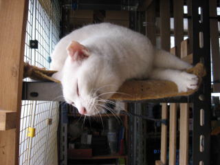 オッドアイの純♂キャットタワーのここが一番好き~~。穴の所に手を入れたり、お腹を入れたり、スリスリして遊んでるにゃ~。2日は何かあったかな??今朝の最低気温は5.7度~。最高気温は18.0度。朝から晴れ~~。春~~みたいな暖かい一日になりました。エアコン点けなくていい一日でした。でも、ホットカーペット点けて、湯たんぽはケージの中に入ってた~。ボク♂に、まだ手がかかってます。薬は1種類、一日3回。焼きカツオや魚等、缶詰は少しずつですが、食べる回数も増えました。カリカリフードは、ちょっぴりですが食べた。頑張って食べようねボク♂様子見(=^-^=)達は、スリリン♀ふく♀ホワイト♂あい♀デコ♀ボク♂の6匹毎日の飲み薬(=^-^=)達は、スリリン♀ふく♀ホワイト♂デコ♀ボク♂の5匹3匹の薬は、缶詰に混ぜてます。ホワイト♂ボク♂は、シリンジで飲ませてます。まだまだ手がかかってます。申し訳ないですが、暫くは、コメントへのお返事は無理みたいです。