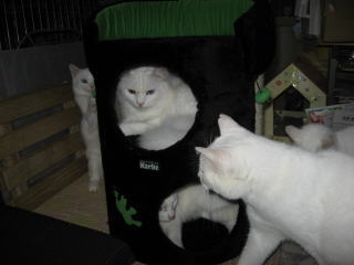 わ~い♪\(^^\)(/^^)/わ~い♪大きな大きなプレゼントが29日の午後に届きました~。開けて\(゚o゚;)/びっくり。少し縦長の丸椅子なのか?にゃんこが中に入って遊べる~。それに両脇には、爪とぎに、丸いボールまで付いてる~~。σ(^_^)アタシには、ハロウィンのお菓子やチョコ~。ニャンタaikoさんから頂きました。サラリーマン猫ニャンタと仲間たち←ニャンタaikoさんのブログです。ニャンタaikoさ~~ん、~(=^‥^)/。・:*:・゜★,。・:*:・゜☆ ありがとニャ!写真を撮ってから、みんにゃの居る場所に持ってきたよ~。早速、白にゃんこがゾロゾロと集まってきたよ~。白にゃんこだらけ~~で、大人気でした。^^ニャンタaikoさん、にゃんこには、楽しいプレゼントをありがとうございました。m(__)mσ(^_^)アタシには、美味しいプレゼントをありがとうございました。m(__)m29日は何かあったかな??今日の最低気温8.7度~。最高気温22.2度。朝から晴れたり曇ったり~。日中は気温が上がり、過ごしやすかった~。様子見(=^-^=)達は、スリリン♀ふく♀ホワイト♂デコ♀ボク♂の5にゃん毎日の飲み薬(=^-^=)達は、スリリン♀ふく♀ホワイト♂デコ♀ボク♂の5にゃん5にゃんの薬は、缶詰に混ぜてます。まだまだ手がかかってます。申し訳ないですが、暫くは、コメントへのお返事は無理みたいです。