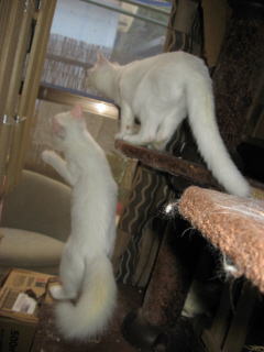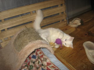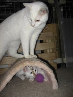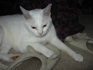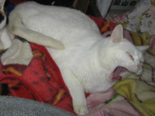 ニャンタaikoさんから頂いた、少し縦長の丸椅子?で、白にゃんこが遊んでま~~す。(昨日のつづき~~)30日は何かあったかな??今日の最低気温9.7度~。最高気温21.2度。早朝は、濃霧~~。視界の悪い朝でした。朝から晴れ~だったかな?暖かかったと思うんだけど・・・。早朝から起きて、猫達の雑用を片付けて、お父さんと二人で、車に乗って、奈良の実家へ行ってきた。(山陽自動車道→中国自動車道→近畿自動車道→阪神高速→第二阪奈道路)来週は、義母の四十九日があるので、相談というのか?話し合いというのか?時間や場所、食事のことなど等、色々と話しあってきました。で、夜遅くの帰宅になりました。運転したお父さんも、横で座ってたσ(^_^)アタシも、大疲れ~~。m(._.*)m ゴメンネ、疲れもあって、皆様方のところへお邪魔することができなかったです。様子見(=^-^=)達は、スリリン♀ふく♀ホワイト♂デコ♀ボク♂の5にゃん毎日の飲み薬(=^-^=)達は、スリリン♀ふく♀ホワイト♂デコ♀ボク♂の5にゃん5にゃんの薬は、缶詰に混ぜてます。まだまだ手がかかってます。申し訳ないですが、暫くは、コメントへのお返事は無理みたいです。