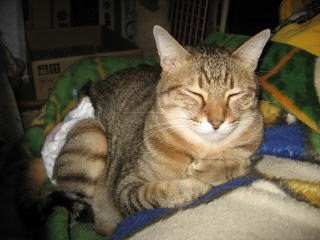 蘭♀ちゃんとツーショット~。蘭♀は、チビッ子ギャングと違って、走り回ってても、休憩することが多いから撮りやすい~。後ろにミコ♀と左のタワーの上はナツ♀と左はアキ♀と左は天♂と寝不足が続いてたので、ここ3日ばかり睡眠不足を補うように、お昼近くまで寝てま~~す。^^疲れた身体も、もう少しで回復かも~~。11日は~~最低気温マイナス2.5℃最高気温9.5℃朝から晴れ間も覗く曇り空。午後2時頃から1時間余り、雨がパラパラと降ってたョ。今日も((´д`)) ぶるぶる・・・さむ~~い一日でした。様子見(=^-^=)達は、スリリン♀ふく♀ホワイト♂デコ♀ボク♂の5にゃん毎日の飲み薬(=^-^=)達は、スリリン♀ふく♀ホワイト♂デコ♀ボク♂の5にゃん5にゃんの薬は、缶詰に混ぜてます。まだまだ手がかかってます。申し訳ないですが、暫くは、コメントへのお返事は無理みたいです。