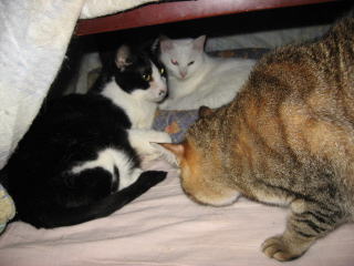 スリーショットにゃんこ~3にゃんこ写ってるけど、兄弟姉妹じゃないにゃ~左はボク♂猫ベットに蘭♀右の手前はきじ丸♂左手前はスリリン♀後ろにサチ♀右はボク♂左は寅♂中は天♂右は蘭♀18日は~~最低気温マイナス2.1℃最高気温10.5℃朝から晴れたり曇ったり~。朝は((´д`)) ぶるぶる・・・さむ~かった。気温が上がると、太陽が照ってると、暖かい~。様子見(=^-^=)達は、スリリン♀ふく♀ホワイト♂デコ♀ボク♂の5にゃん毎日の飲み薬(=^-^=)達は、スリリン♀ふく♀ホワイト♂デコ♀ボク♂の5にゃん5にゃんの薬は、缶詰に混ぜてます。まだまだ手がかかってます。申し訳ないですが、暫くは、コメントへのお返事は無理みたいです。