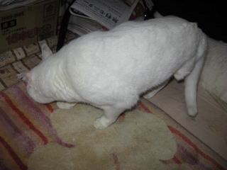 将♂ちゃ~~ん、そこで何してるのかにゃ~?独り遊びかにゃ~?それとも誰かが通るのを狙ってるのかにゃ~?12月9日から認知症の母と暮らし始めて、毎日バタバタ続きで、ゆっくりPCに向かう時間がなくなってます。申し訳ないですが、暫くは、簡単日記になると思います。暫くは、皆様方の所にお邪魔できないかも知れないです。m(._.*)m3日は~~最低気温マイナス3.6℃最高気温7.4℃昨夜から雪が降ってたよ~。朝起きたら、今日も真っ白~積もってた。でも、朝から晴れたり曇ったり~。雪も溶けた~。様子見(=^-^=)達は、スリリン♀ふく♀ホワイト♂デコ♀ボク♂の5にゃん毎日の飲み薬(=^-^=)達は、スリリン♀ふく♀ホワイト♂デコ♀ボク♂の5にゃん5にゃんの薬は、缶詰に混ぜてます。まだまだ手がかかってます。申し訳ないですが、暫くは、コメントへのお返事は無理みたいです。